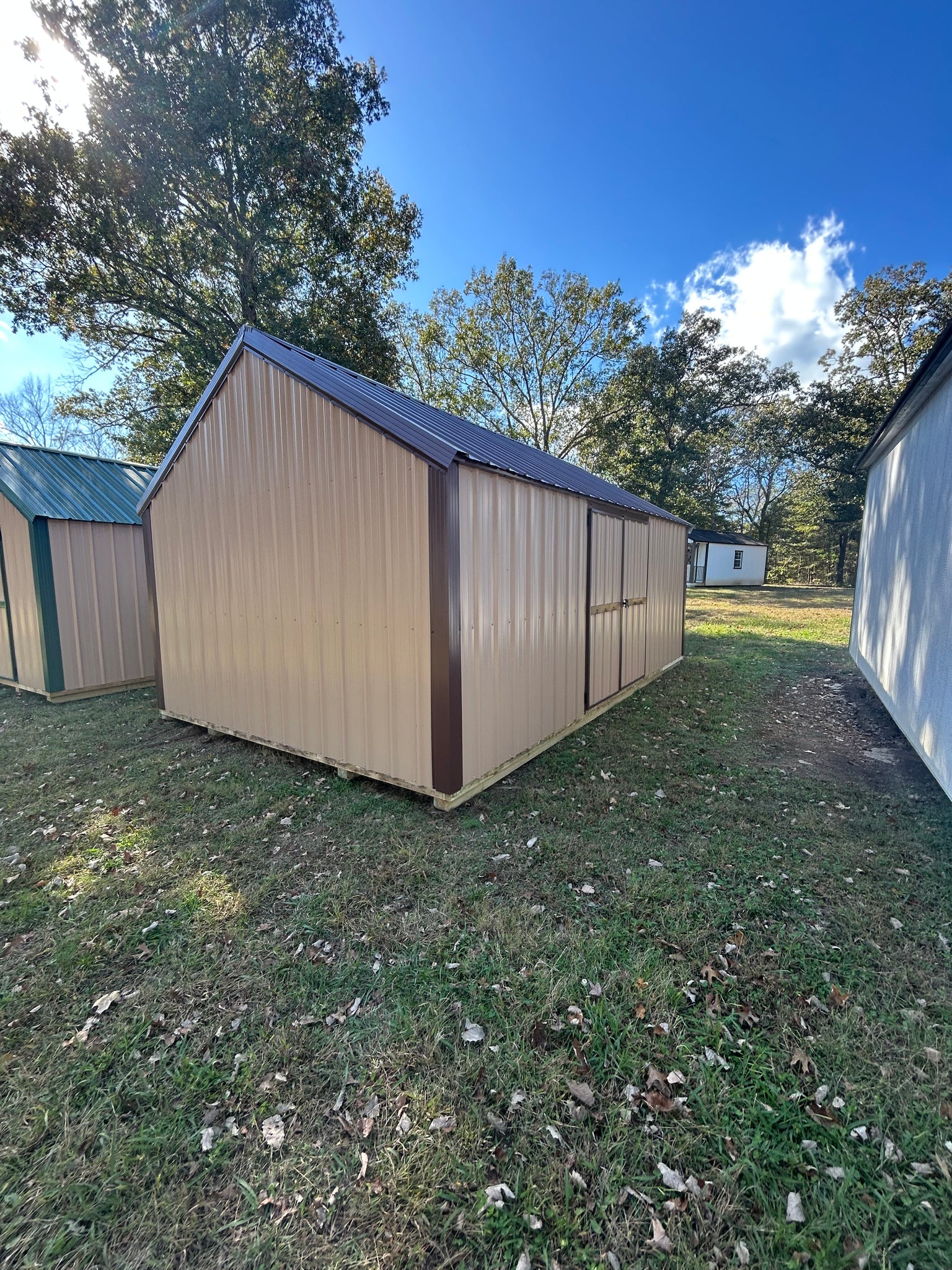 12x20 Tan Utility Shed is available for delivery!