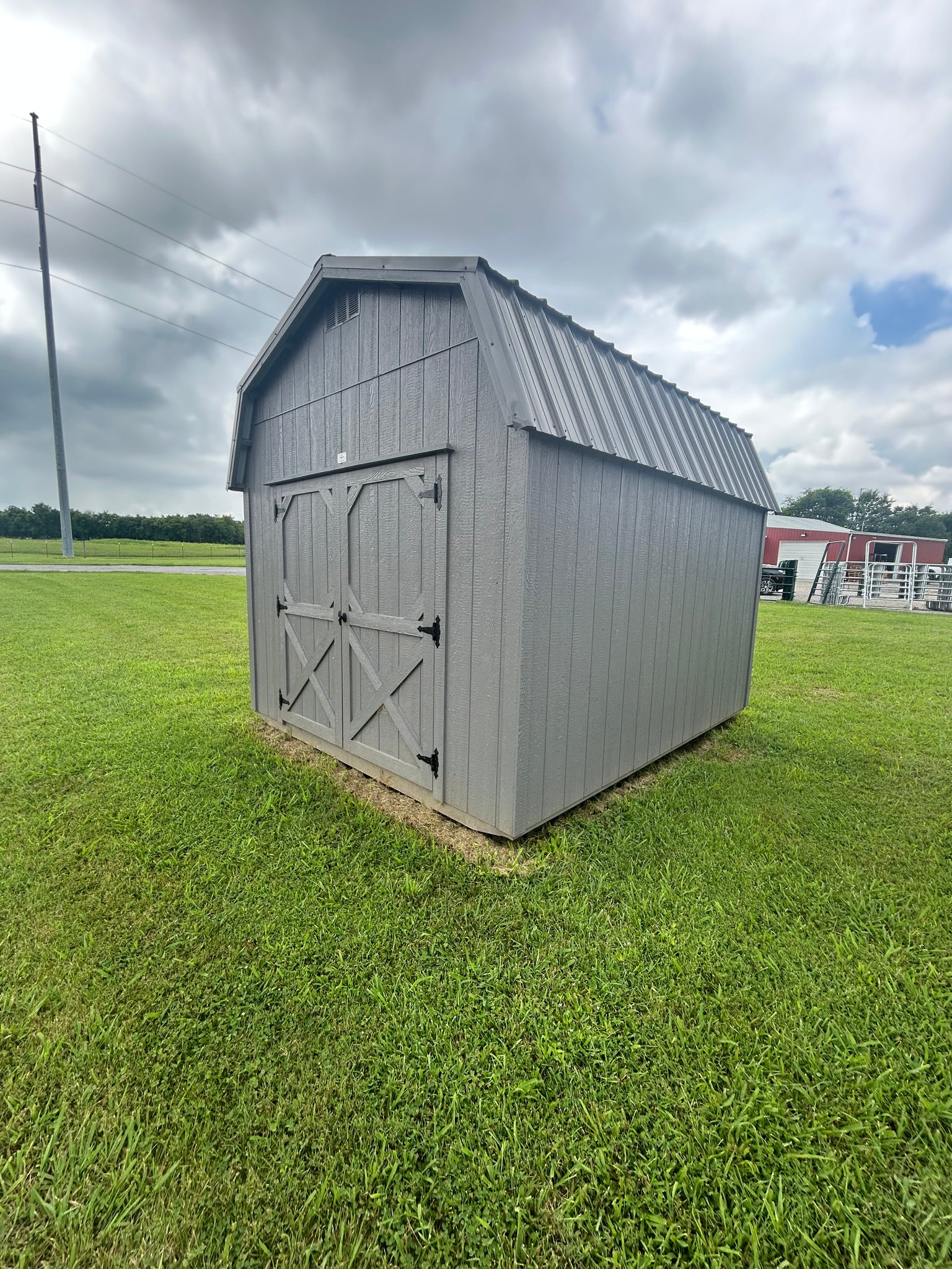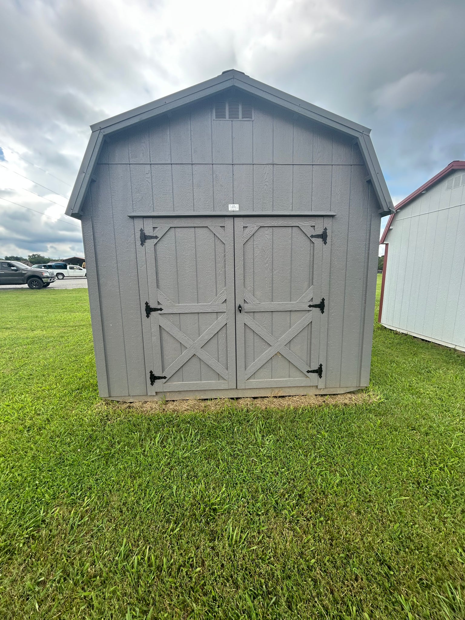 10x12 Grey Mini Barn is available for delivery!